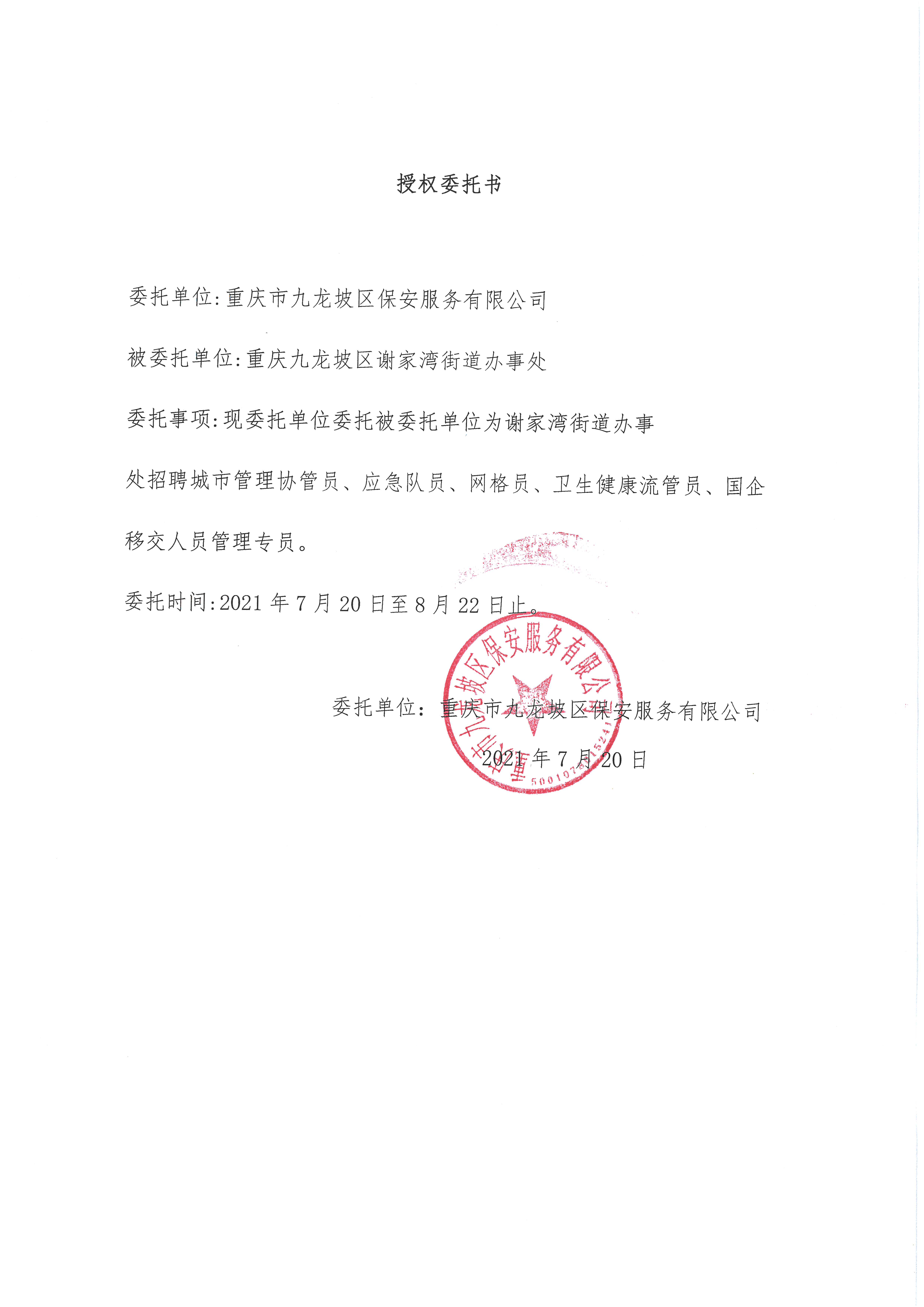 2022-04-01 13:09:00閱讀()重慶市九龍坡區(qū)人民政府為適應新形勢下街道工作需要,建成一支政治素質高、業(yè)務能力強、服務水平優(yōu)的工作人員隊伍,根據街道實際,受重慶市九龍坡區(qū)保安服務有限公司委托,面向社會公開招聘城市管理協(xié)管員、退役軍人專職工作者、群團工作者、網格員、衛(wèi)生健康流管員、應急隊員。