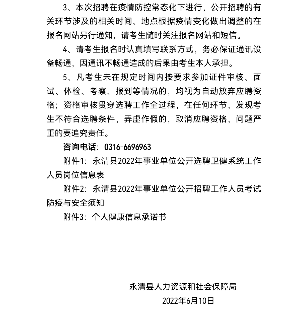 2022年廊坊永清縣事業(yè)單位公開(kāi)選聘衛(wèi)健系統(tǒng)工作人員公告