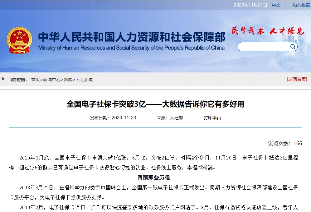 2020-11-21 17:28:10閱讀()人社部11月21日消息 根據(jù)人社部的消息,截至 11 月 20 日,電子社保卡抵達(dá) 3 億里程碑,超過 1/5 的群眾已可通過電子社??ǐ@得貼心便捷的就業(yè)、社保線上服務(wù)。