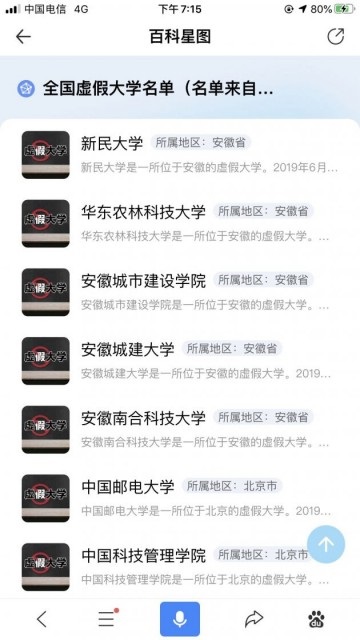 不僅如此,百度還提供了一個(gè)完整“野雞大學(xué)”名單及“正規(guī)大學(xué)名錄”,方便考生和家長甄別真?zhèn)危苊饴淙胍半u大學(xué)的陷阱之中。
