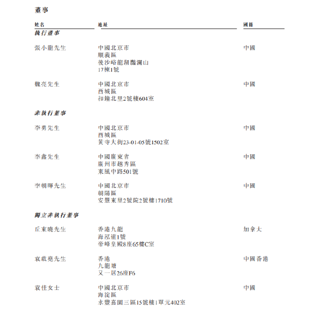 招股書顯示,張小龍、魏亮任執(zhí)行董事,李勇、李鑫、李朝暉任非執(zhí)行董事,邱東曉、袁啟堯、袁佳任獨立非執(zhí)行董事。