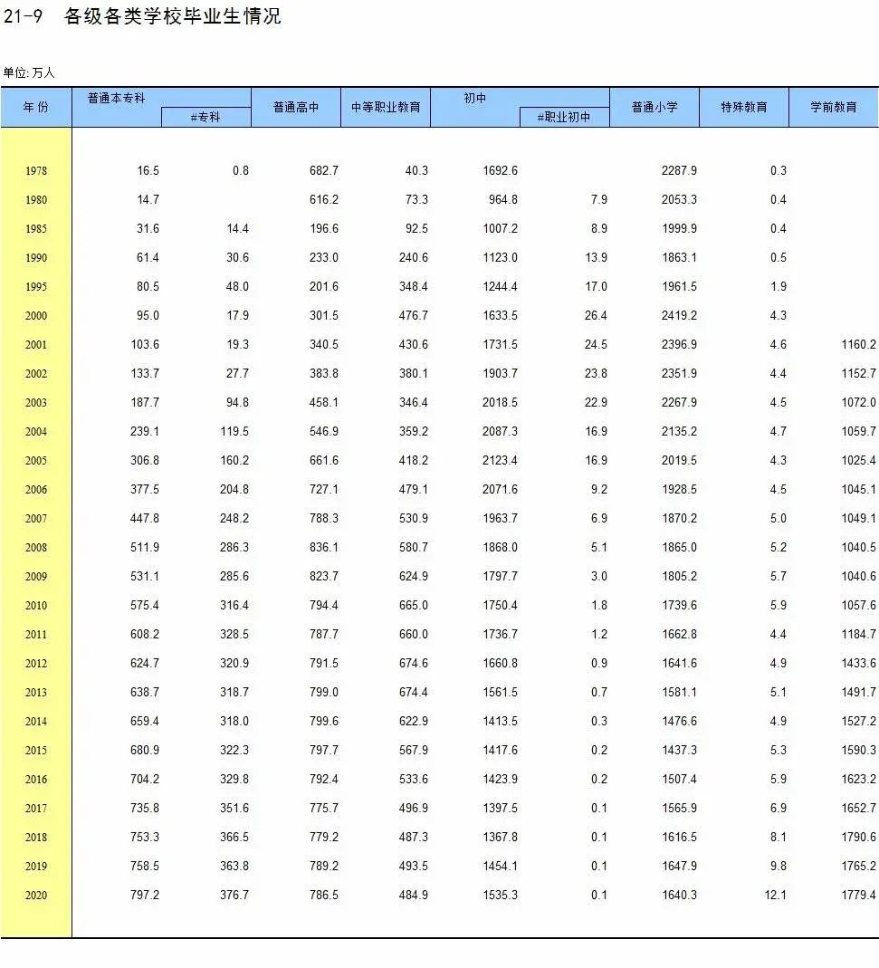 (中國(guó)歷年普通??飘厴I(yè)生人數(shù),截圖自數(shù)據(jù)基地)