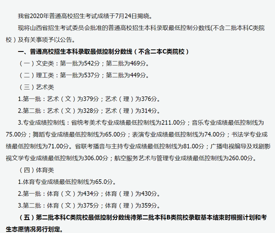 5、高職??婆幕n控制線:普通高職專科文史、理工類為160分,藝術(shù)類和體育類高職專科為150分。