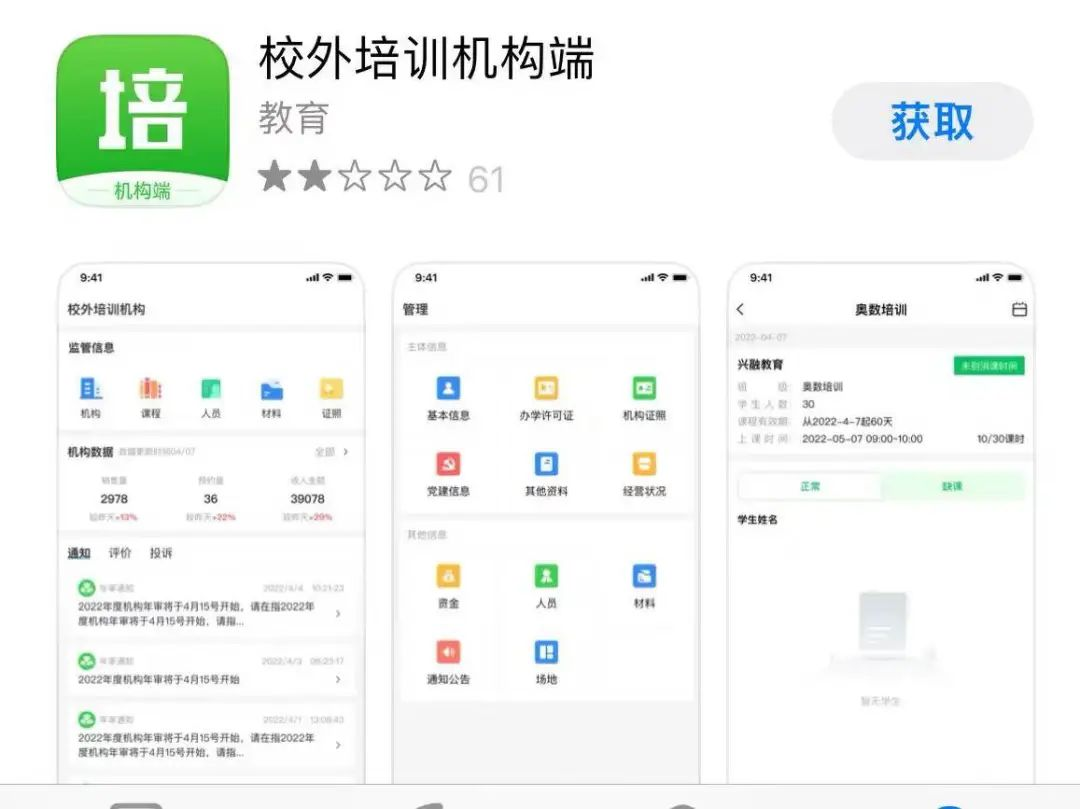 而針對線下教育培訓(xùn)機(jī)構(gòu),教育部旗下中央電化教育館還推出了“校外培訓(xùn)機(jī)構(gòu)端”App,支撐落實(shí)備案審批制度。同時(shí),還推出了“校外培訓(xùn)管理端”App,形成教育培訓(xùn)監(jiān)管與服務(wù)的App矩陣。