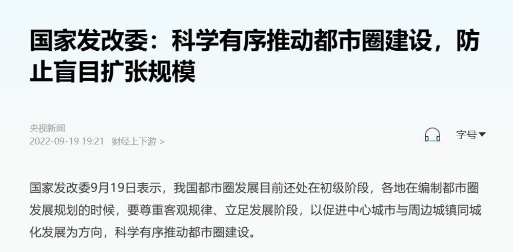 去年9月,國(guó)家發(fā)改委新聞發(fā)言人表示,我國(guó)都市圈發(fā)展還處在初級(jí)階段,各地要尊重客觀規(guī)律,不能跨越發(fā)展階段,在不具備條件的情況下推動(dòng)都市圈建設(shè)。(參閱《這些城市,“大都市圈”夢(mèng)碎了?》)