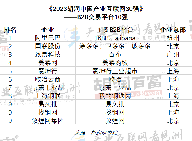 阿里巴巴、國聯(lián)股份、致景科技、美菜網(wǎng)、震坤行、歐冶云商、京東工業(yè)品、上海鋼聯(lián)、易久批、找鋼網(wǎng)、敦煌網(wǎng)集團獲評“B2B交易平臺10強”。
