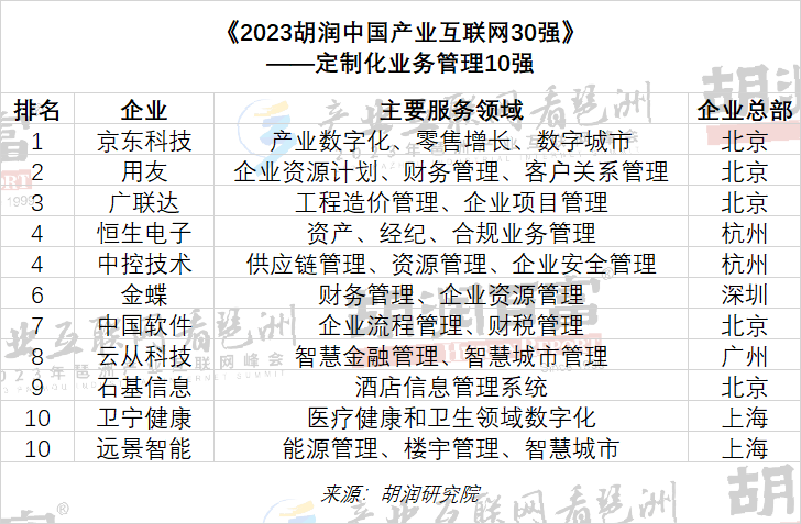 京東科技、用友、廣聯(lián)達、恒生電子、中控技術(shù)、金蝶、中國軟件、云從科技、石基信息、衛(wèi)寧健康、遠景智能獲評“定制化業(yè)務(wù)管理10強”。