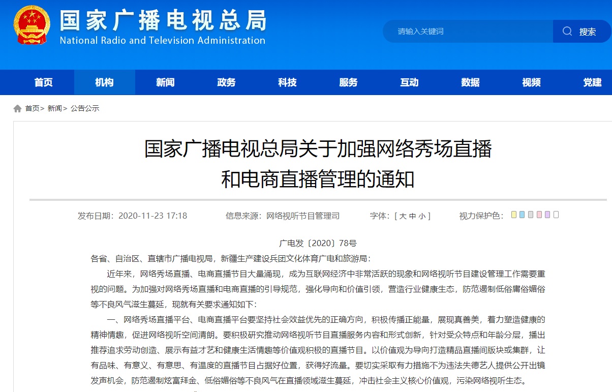 11月23日消息今天,廣電總局發(fā)布了關(guān)于加強(qiáng)網(wǎng)絡(luò)秀場直播和電商直播管理的通知,通知指出,網(wǎng)絡(luò)秀場直播平臺(tái)要對(duì)網(wǎng)絡(luò)主播和打賞用戶實(shí)行實(shí)名 ...