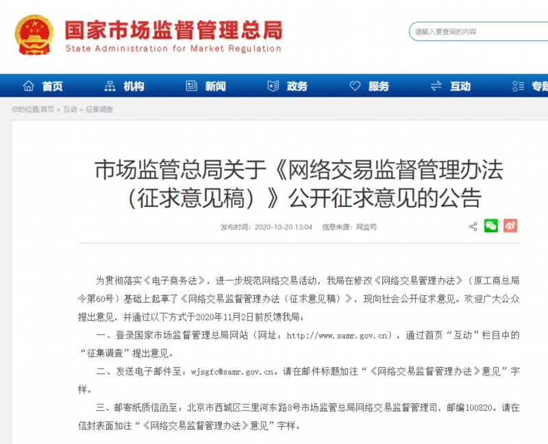 近日,國家市場監(jiān)管總局公布了《網(wǎng)絡(luò)交易監(jiān)督管理辦法(征求意見稿)》,進(jìn)一步規(guī)范網(wǎng)絡(luò)交易活動(dòng),將網(wǎng)絡(luò)直播帶貨等網(wǎng)絡(luò)交易新業(yè)態(tài)納入監(jiān)管范 ...