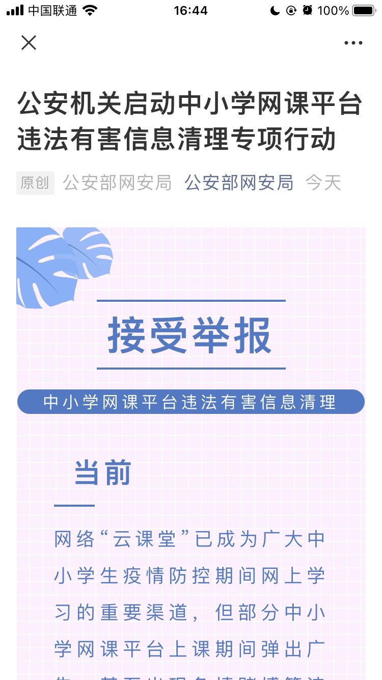 公安部網(wǎng)安局:網(wǎng)課平臺傳播含色情、賭博等信息可舉報