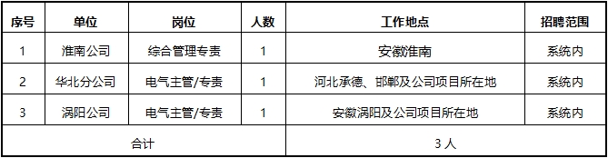 根據(jù)工作需要,現(xiàn)招聘安徽公司所屬單位相關(guān)崗位。具體事項公告如下: