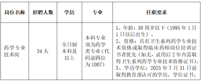 2、資格:具有衛(wèi)生系列藥學(xué)專業(yè)技術(shù)資格或取得臨床藥師崗位培訓(xùn)證書者優(yōu)先(如無,錄用后2年內(nèi)需取得衛(wèi)生系列藥學(xué)專業(yè)技術(shù)資格證書)。