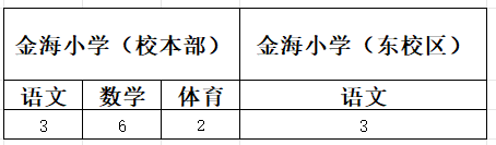 金海小學校本部:小學語文3人、數(shù)學6人,體育2人。