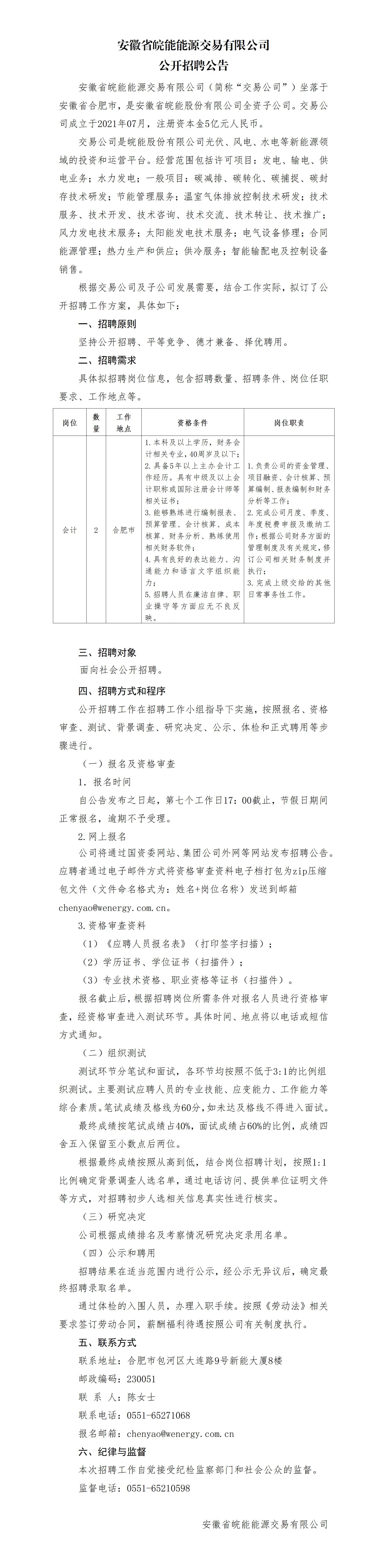 2023年安徽省皖能能源交易有限公司公開招聘公告(二)